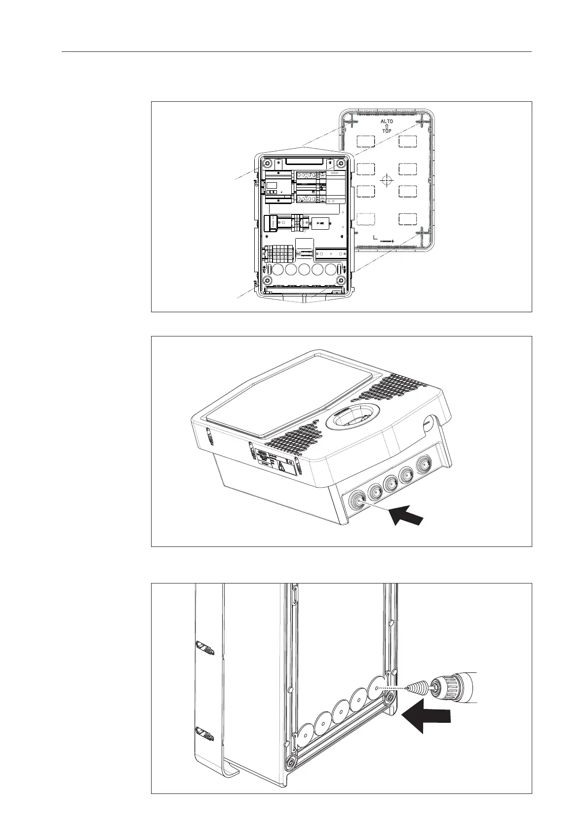 Voor de ingang van de kabels vanaf de onderkant (A) moet de bijgeleverde kabelwartel gebruikt worden