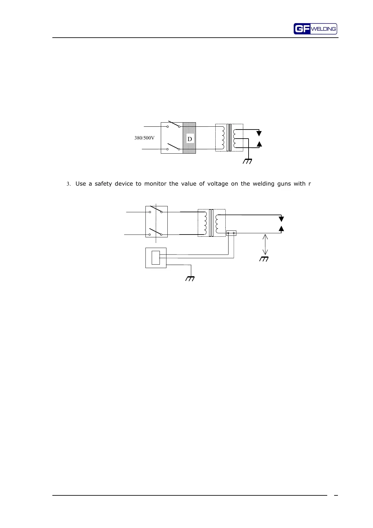 Use a safety device to monitor the value of voltage on the welding guns with respect to