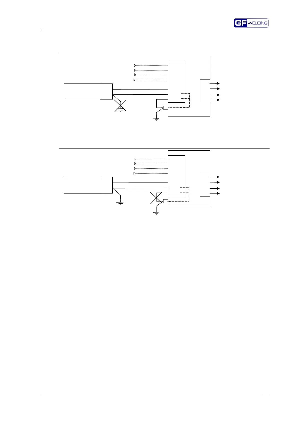 If earthing for 24VE supply has been performed on the welding control device side, then