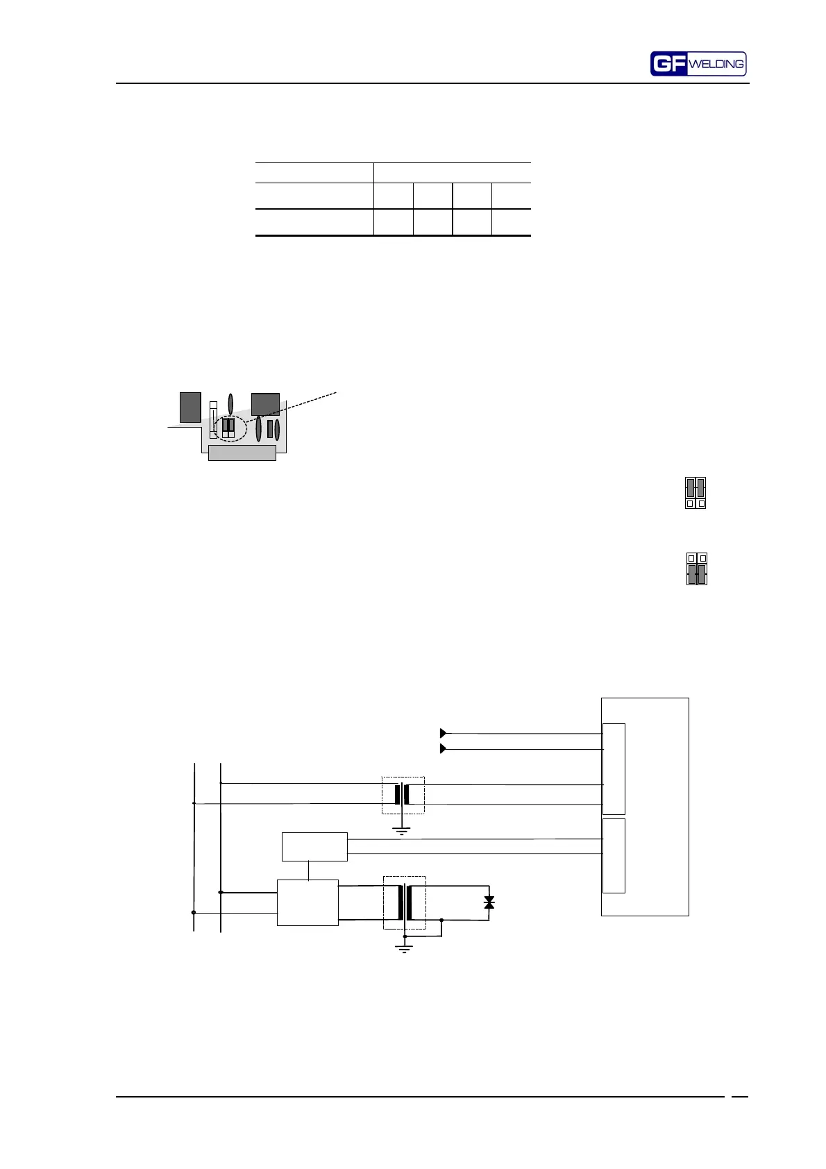 through an attenuation/insulation transformer, the jumpers are to be set