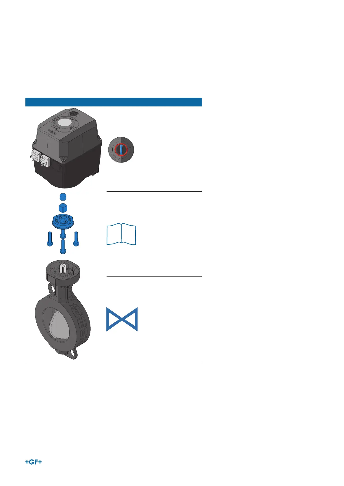 5. Stellantrieb auf das Ventil montieren, siehe Montageanleitung des jeweiligen Handventils.