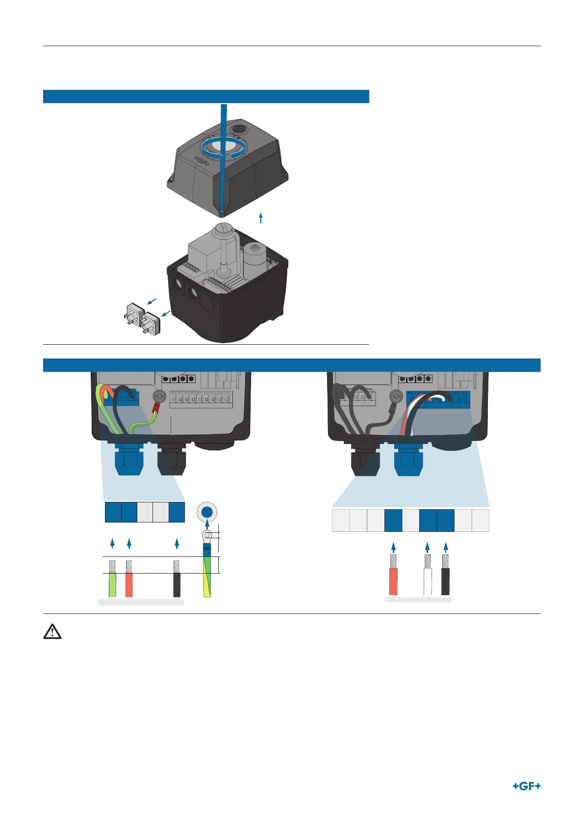 Verbinden des Stellglieds mit einem oenen Draht durch die mitgelieferten Kabelverschraubungen.
