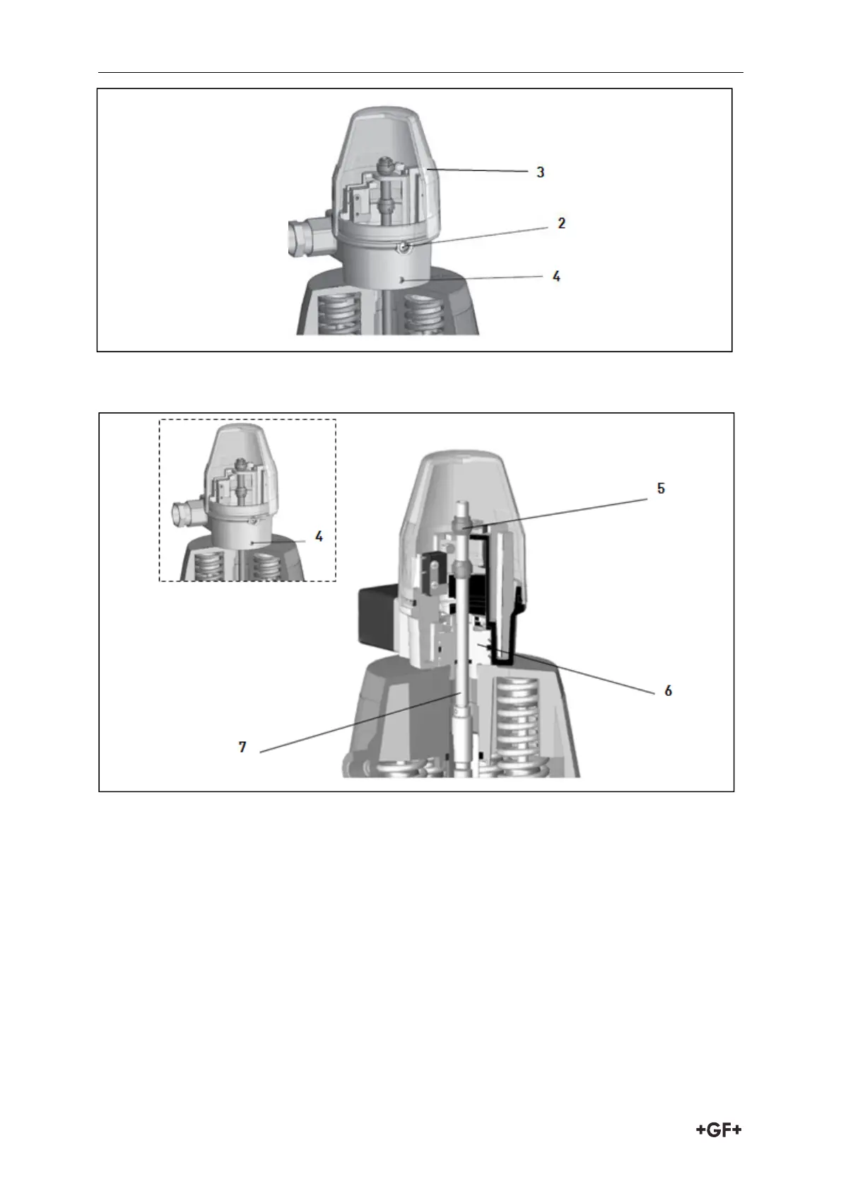 11. Enroscar el husillo 7 con una llave Allen en la tuerca del husillo del actuador. Tener en