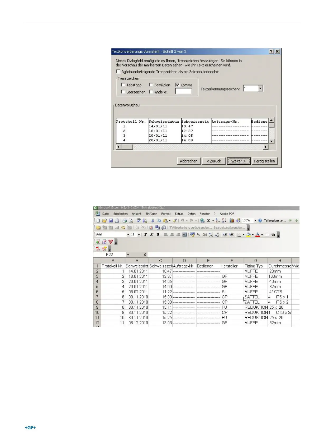 Wähle “Komma” und “Weiter >”.