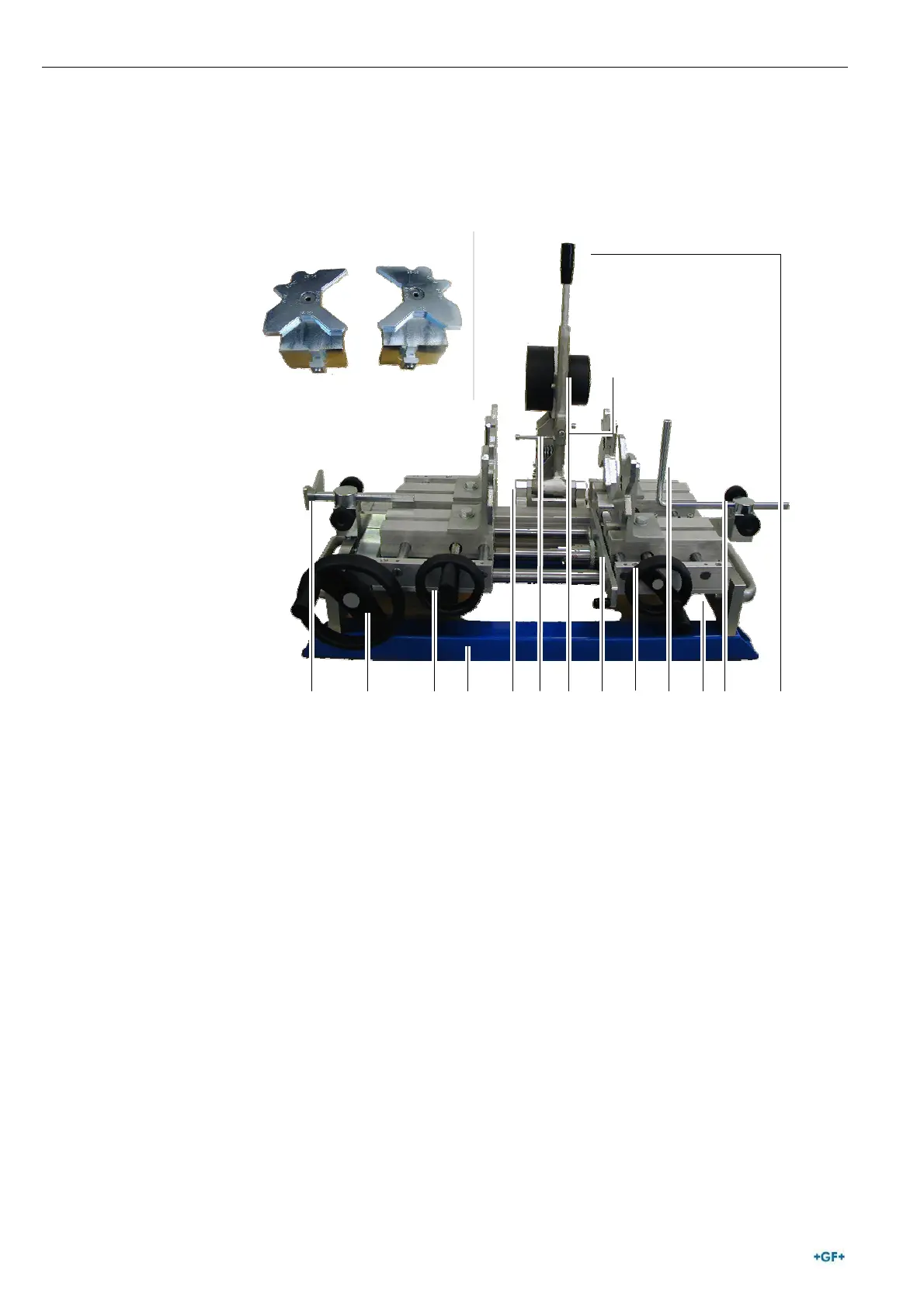 Handrad für das Spannen des Fittings auf dem rechten Schlitten