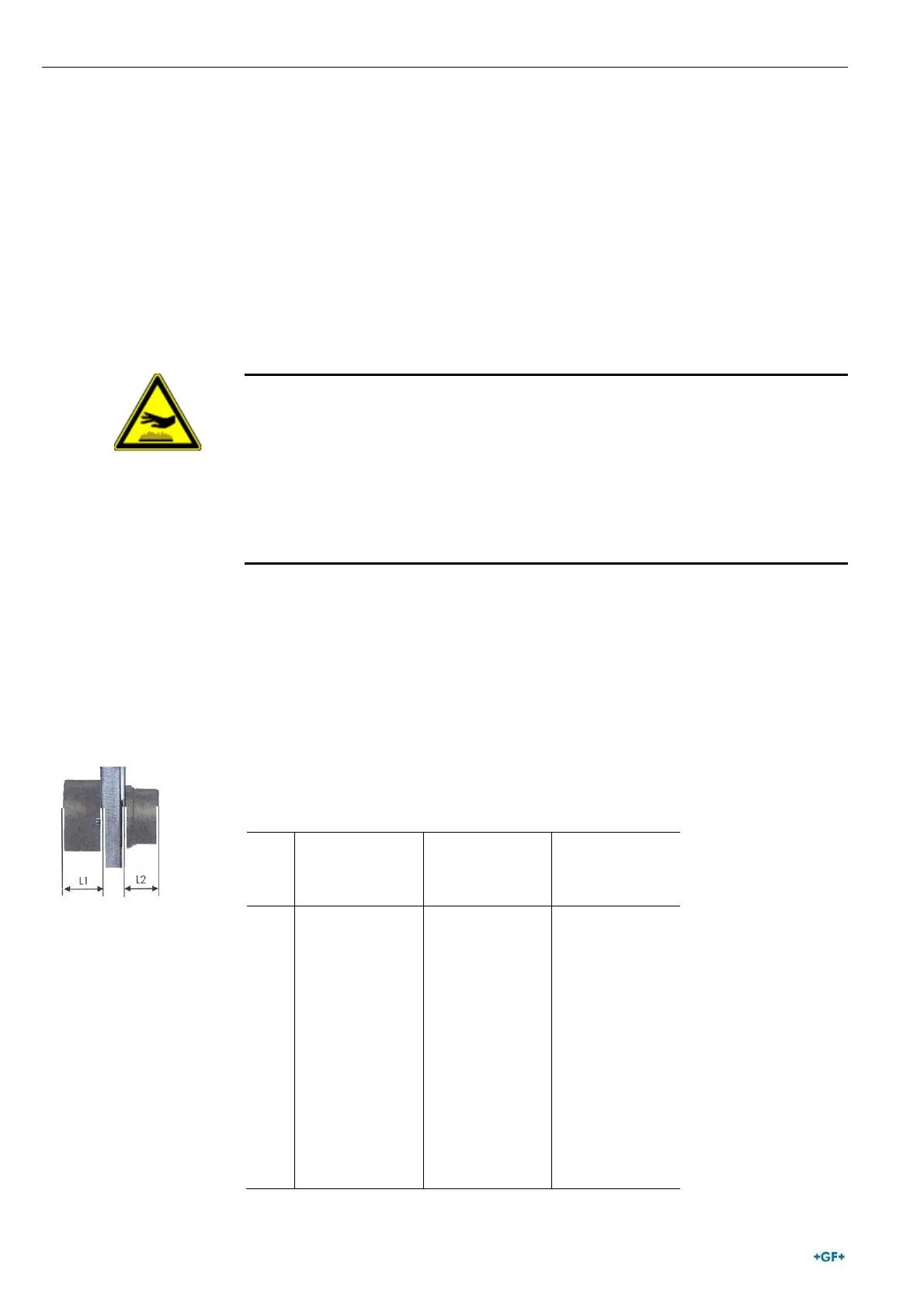 2. Heizstutzen und -buchsen mit L1 und L2 gemäss folgender Tabelle.