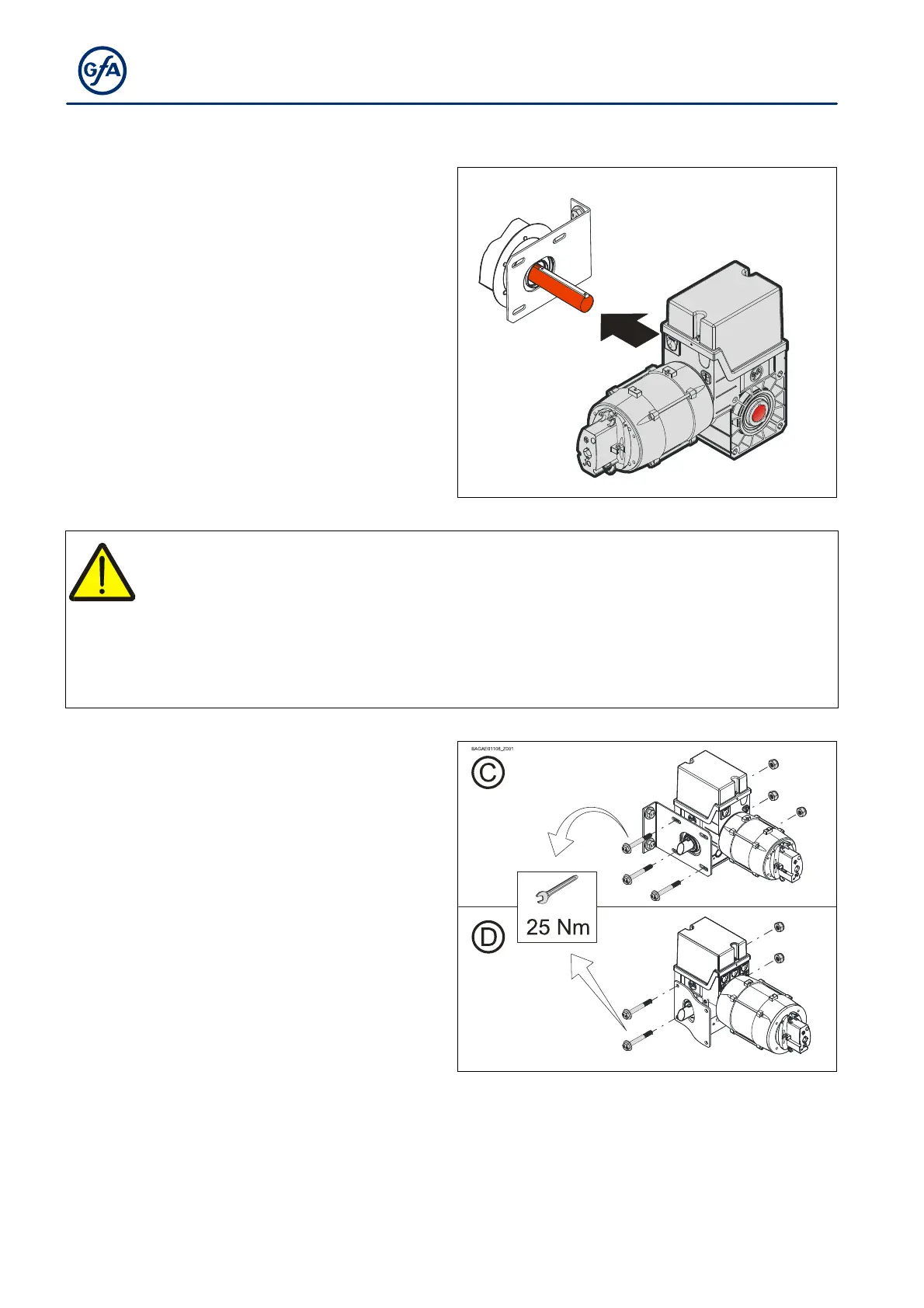 Do not hit the gearbox with a hammer when placing the drive unit on the shaft.