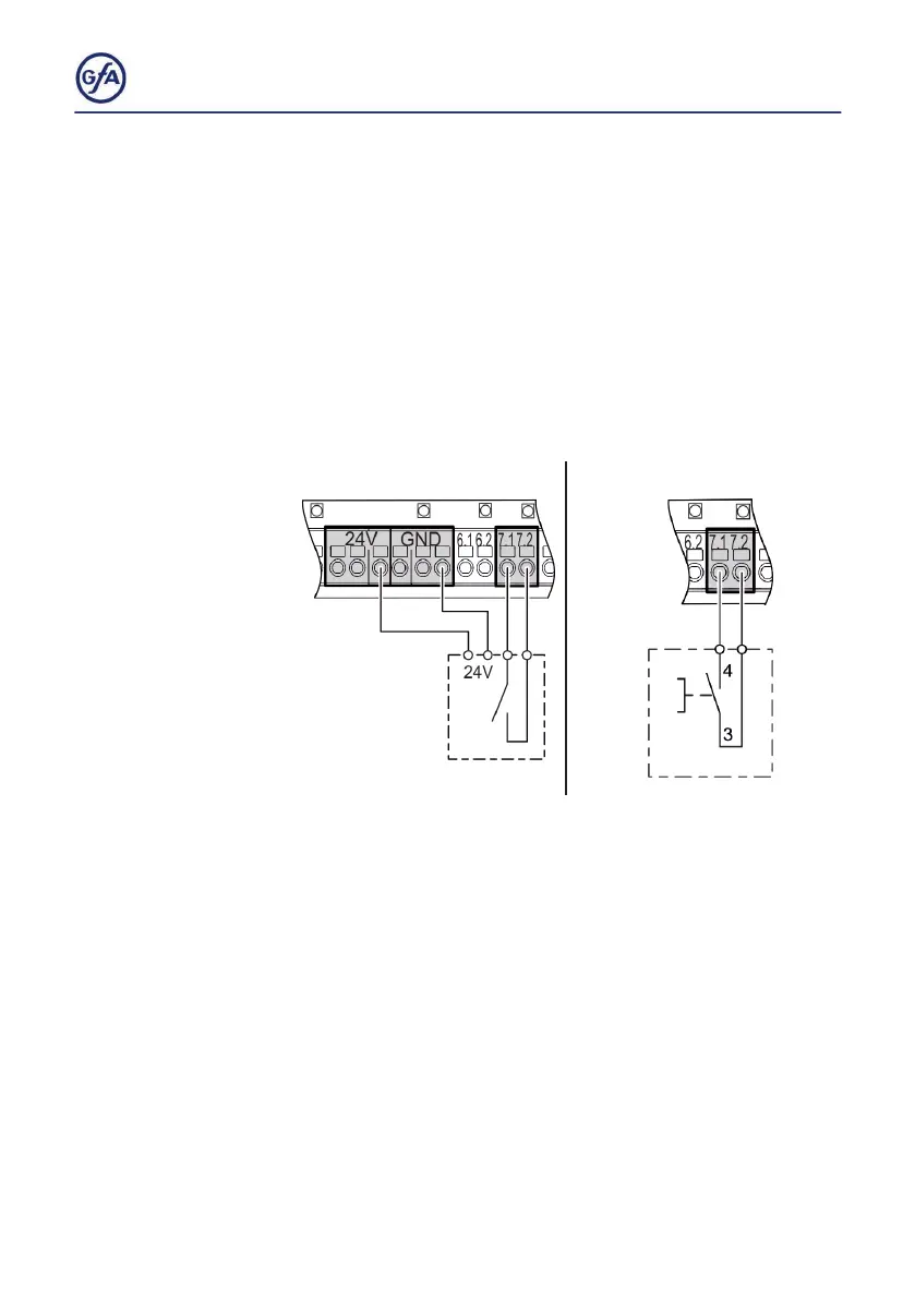 X7.1/X7.2. The switching contact must be potential-free.