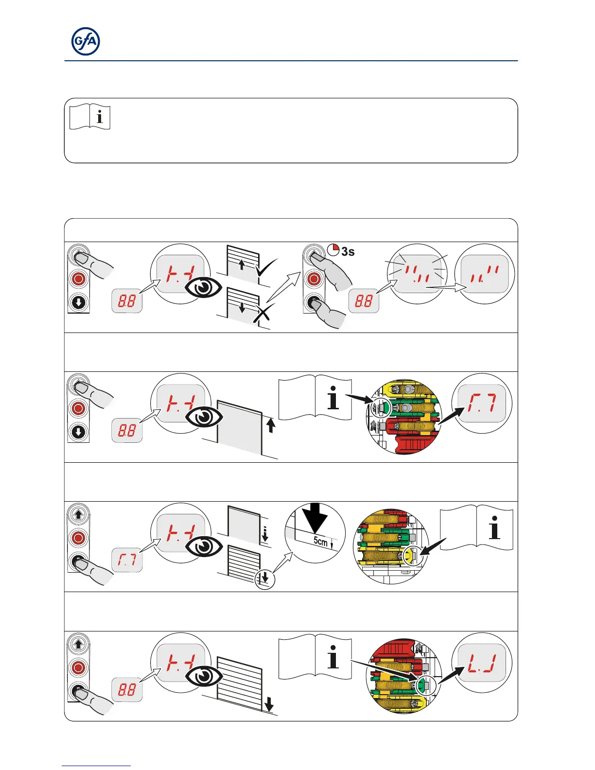 3. Move to CLOSE final limit position 5cm above the ground and adjust S5 pre-limit switch