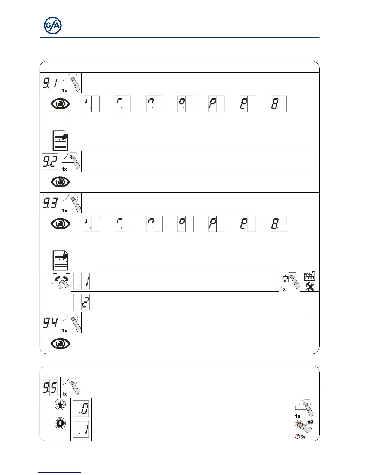 Deletin g of al l setti ngs / R e adout GfA stic k