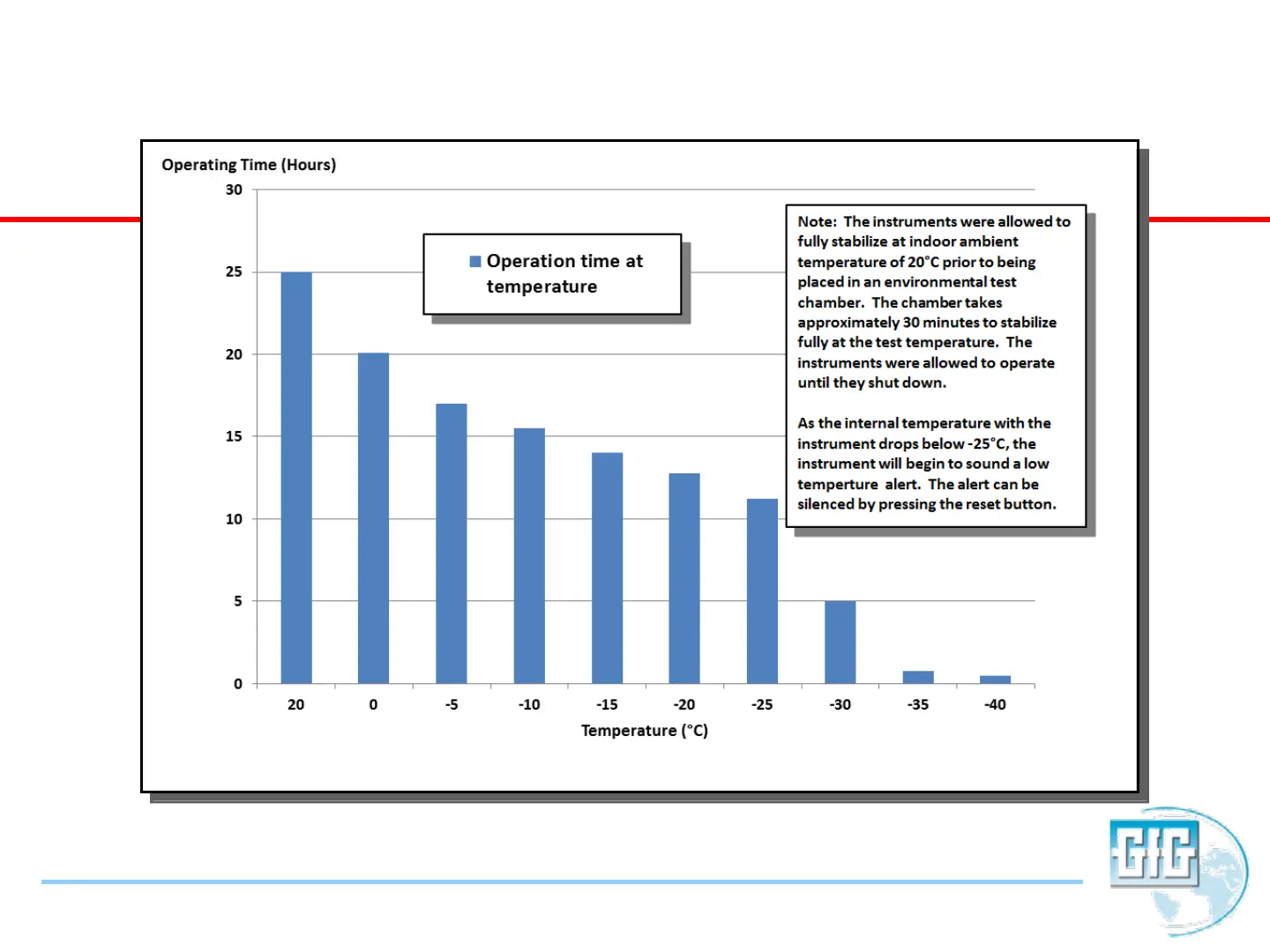GfG G450 - Battery Run Time vs. Temperature; Temperature Impact on Battery Life