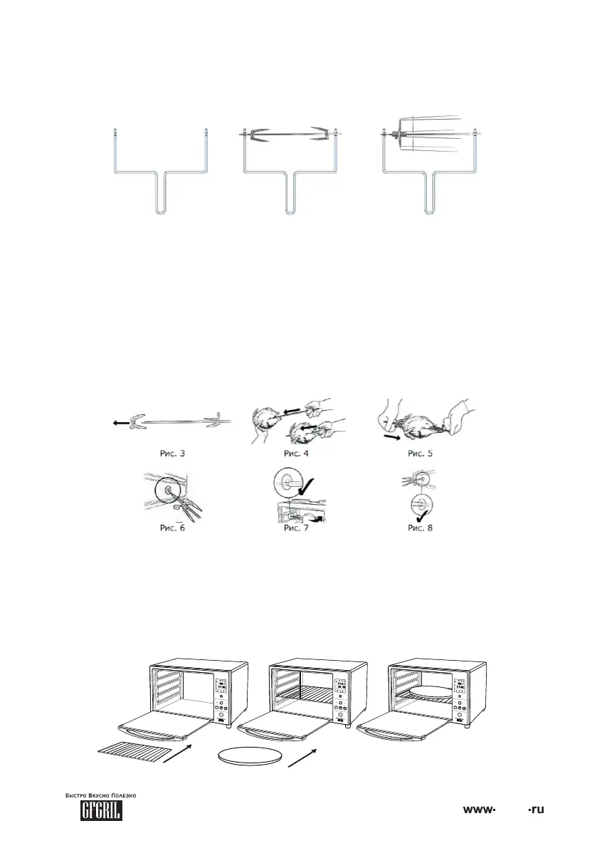 - Fasten the sharpened tip of the skewer in the seat on the right side of the mini-oven. The
