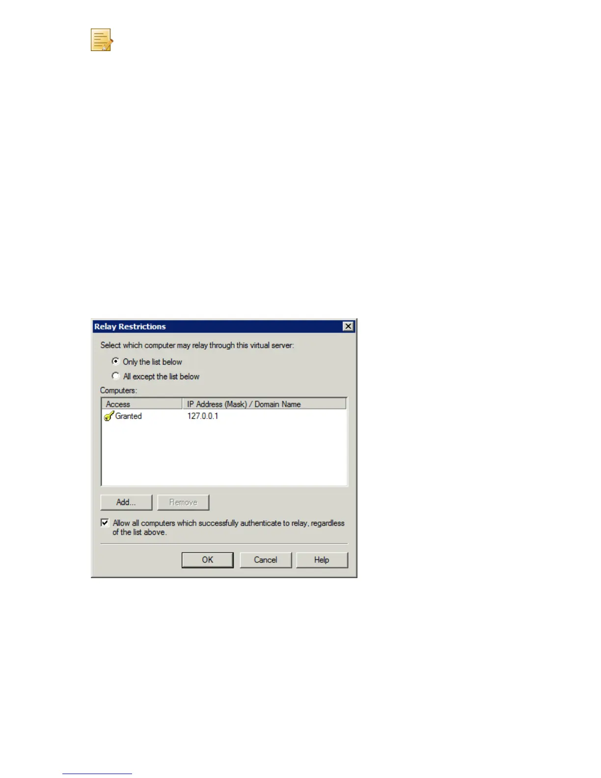 Screenshot 1 - Relay restrictions dialog