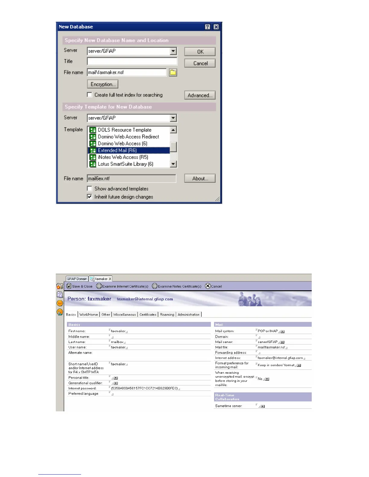Step 2: Configure the Person for the GFI FaxMaker Domino database