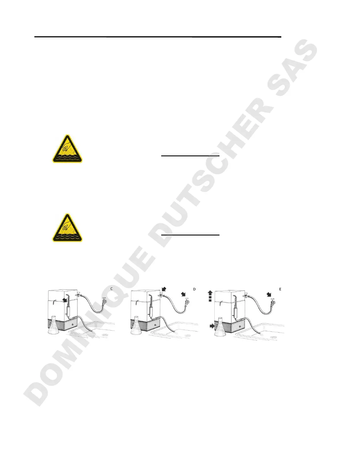 water outlet. The hose must lead into a drain on a lower level and must have a slope on its