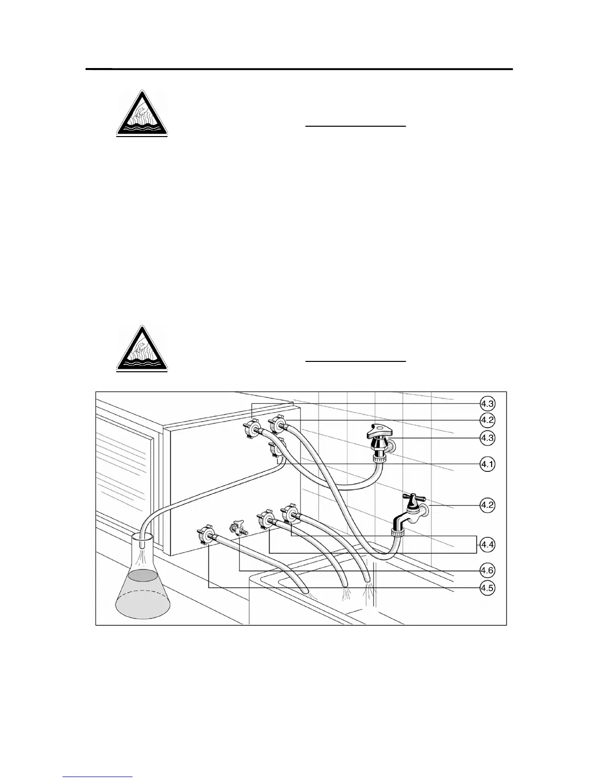 das verunreinigte Wasser der Destillierblase ab. Der hier anzuschließende ½ “-Schlauch