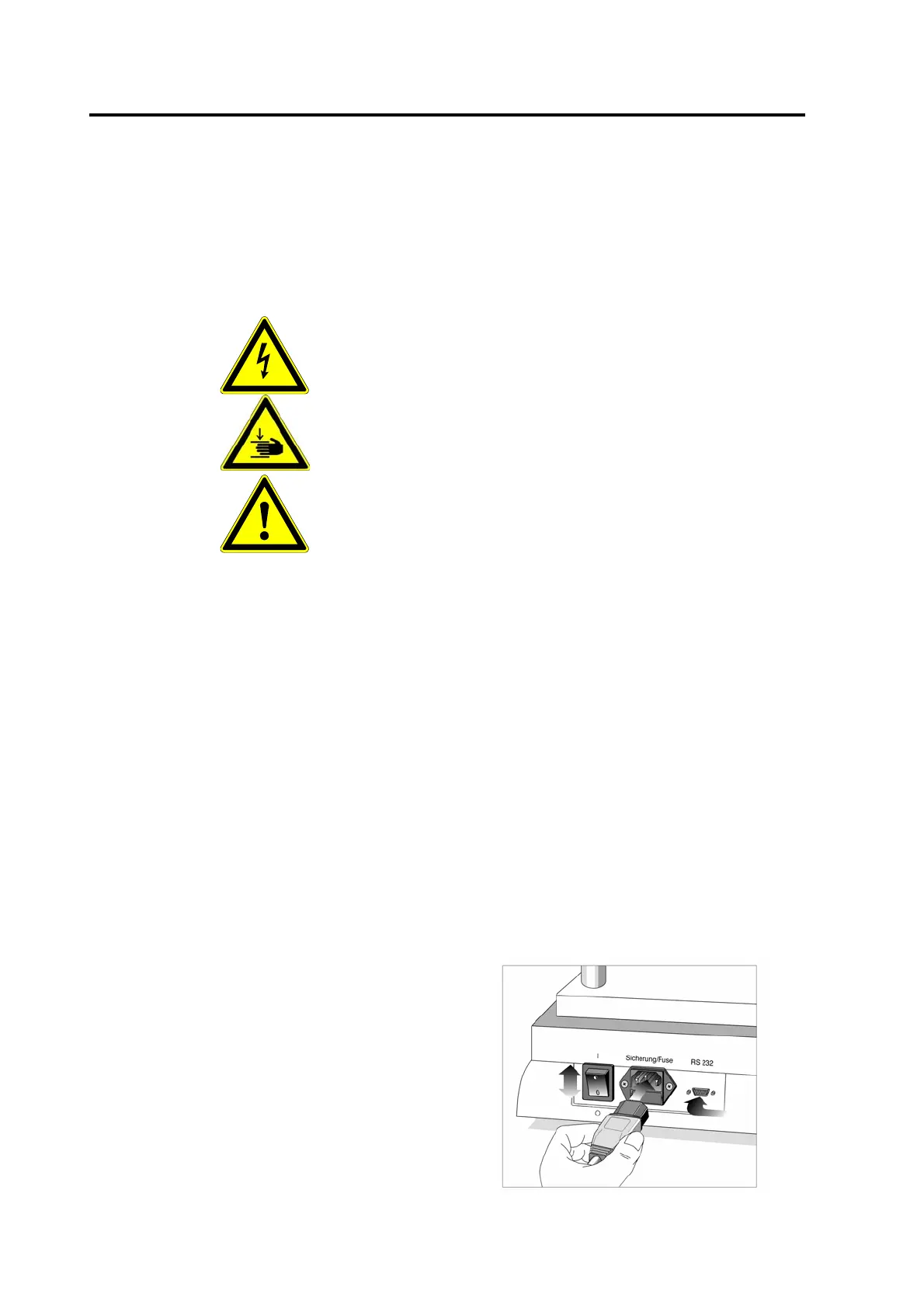 Der Hauptschalter auf der Rückseite des Schüttelapparates muß in Stellung 0 sein.