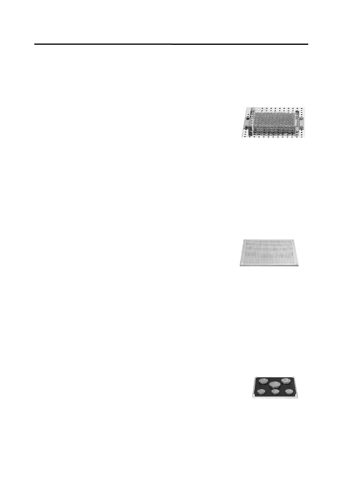 Shaking Tray with holes to fix clamps for Erlenmeyer flasks and separating funnels, and to fix
