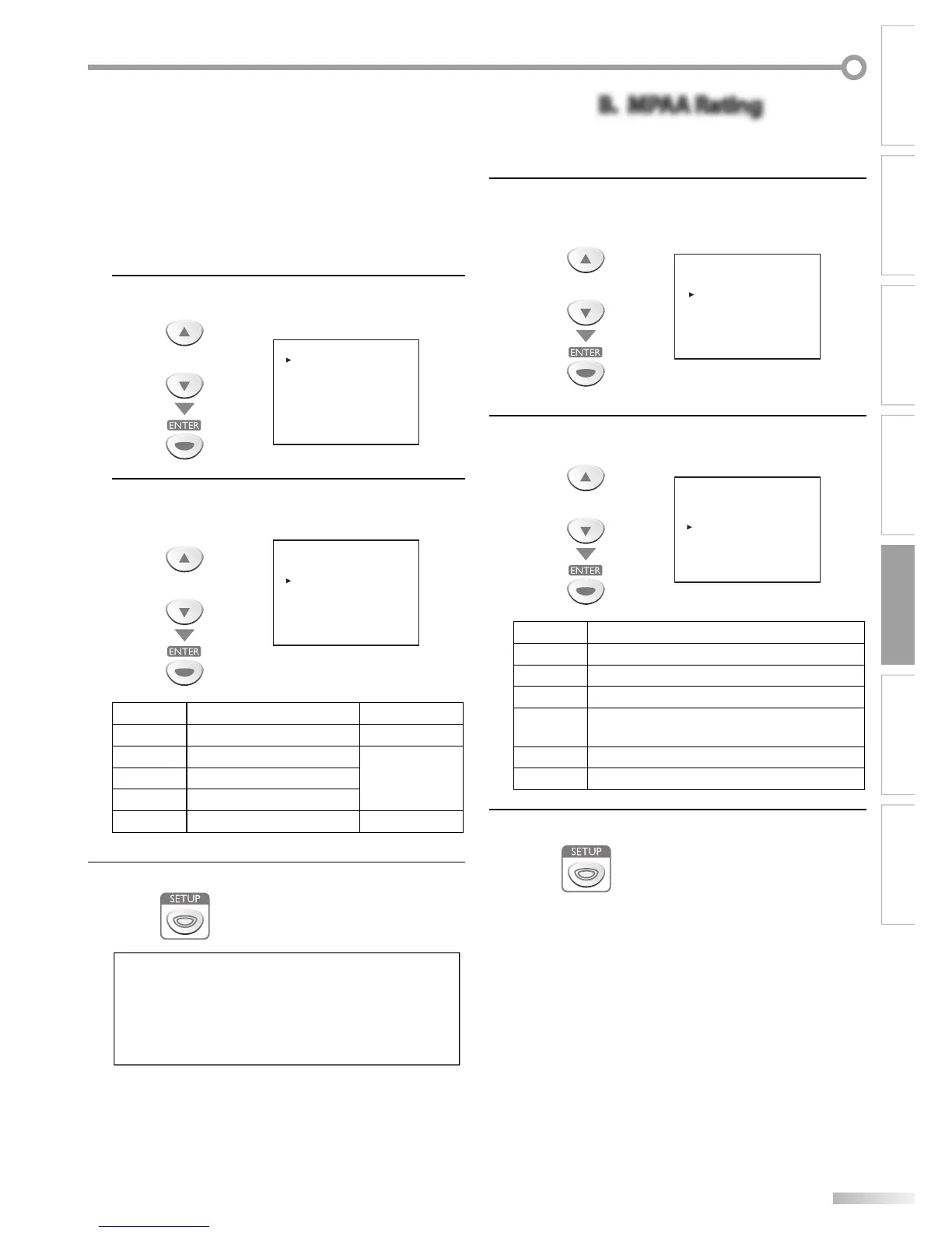 Use [Cursor K /L] to select “MPAA RATING”, then press