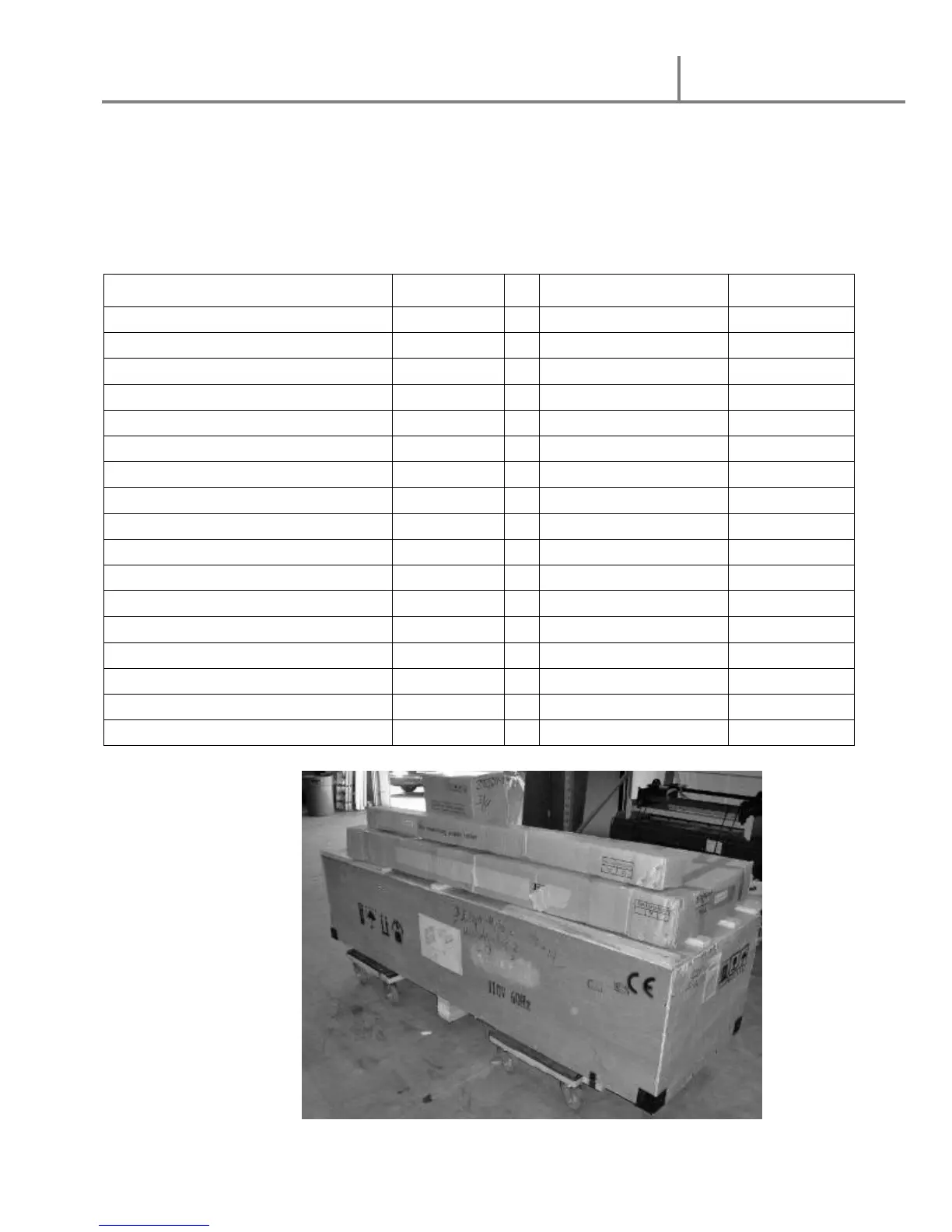 Remove all parts from shipping create and boxes. Inspect parts and the machine