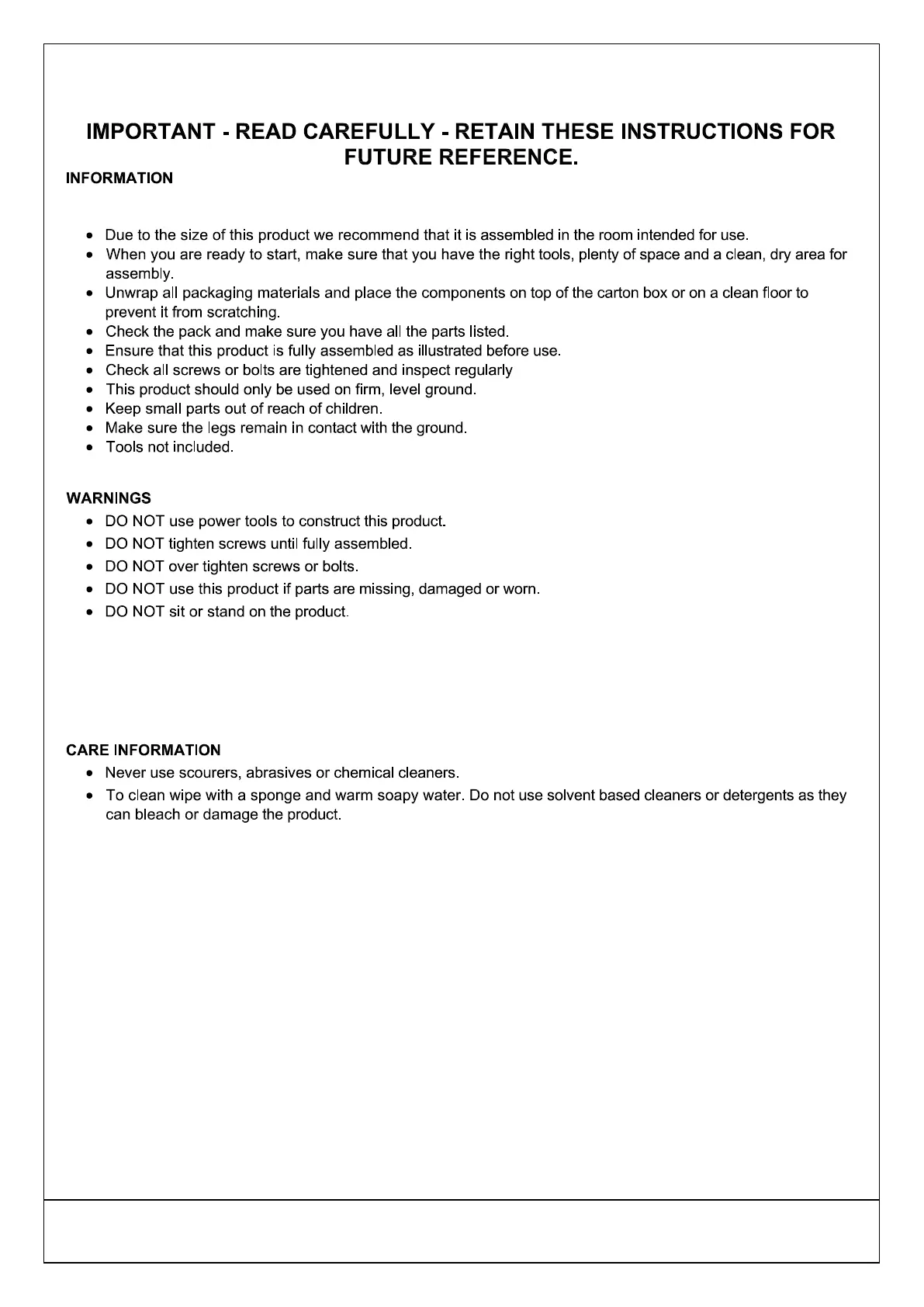 source suitable fixings for your wall type. If in doubt please consult a qualified tradeperson. Warning: Always