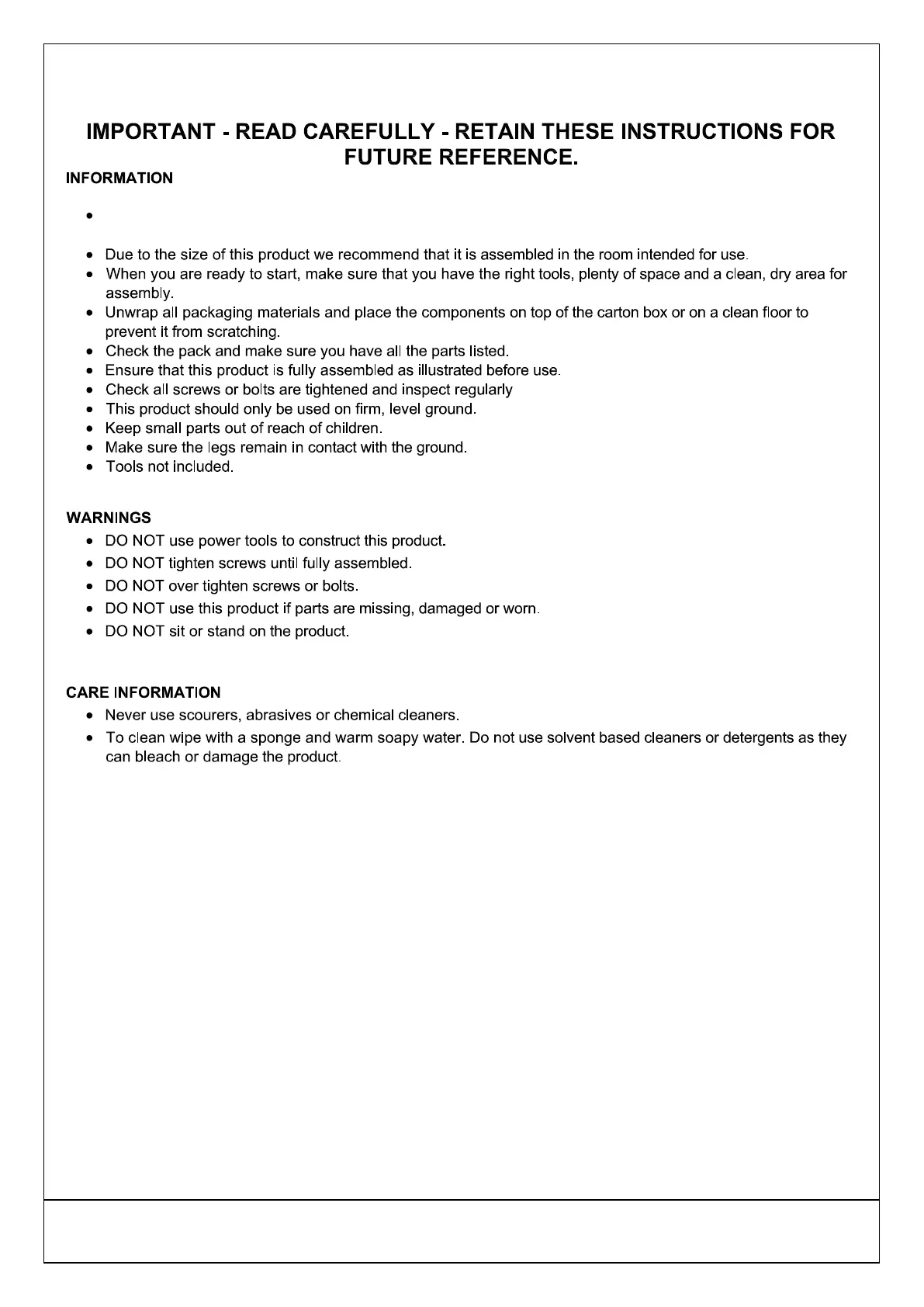 GFW LANCASTER WARDROBE - General Safety Precautions and Care
