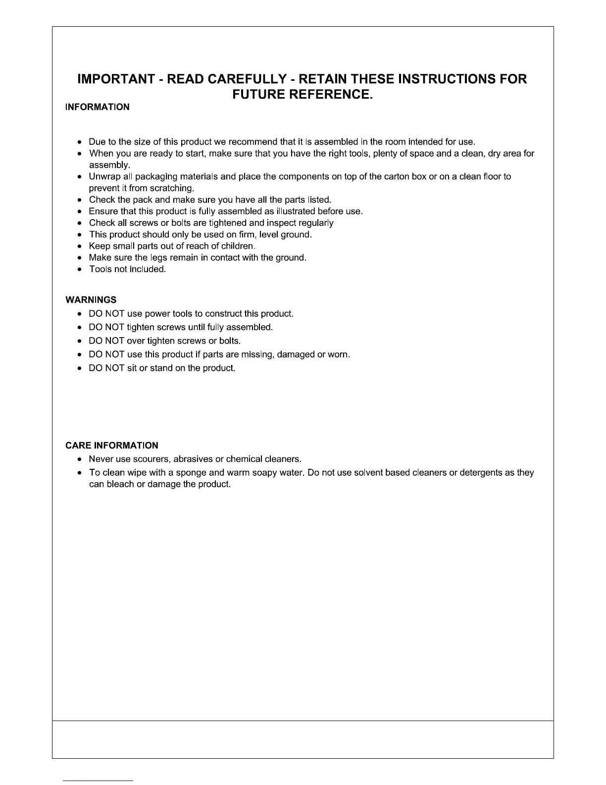 source suitable fixings for your wall type. If in doubt please consult a qualified tradeperson. Warning: Always