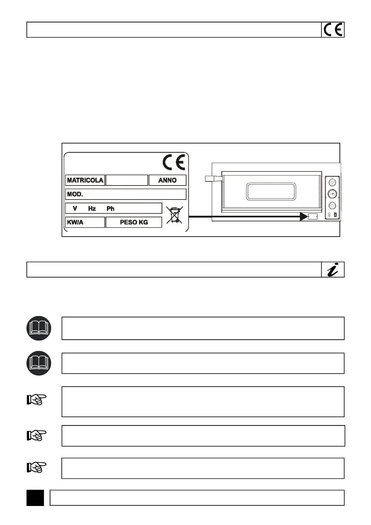 - Marcadura CE; - Tensión y frecuencia eléctrica (Volt/Hz);