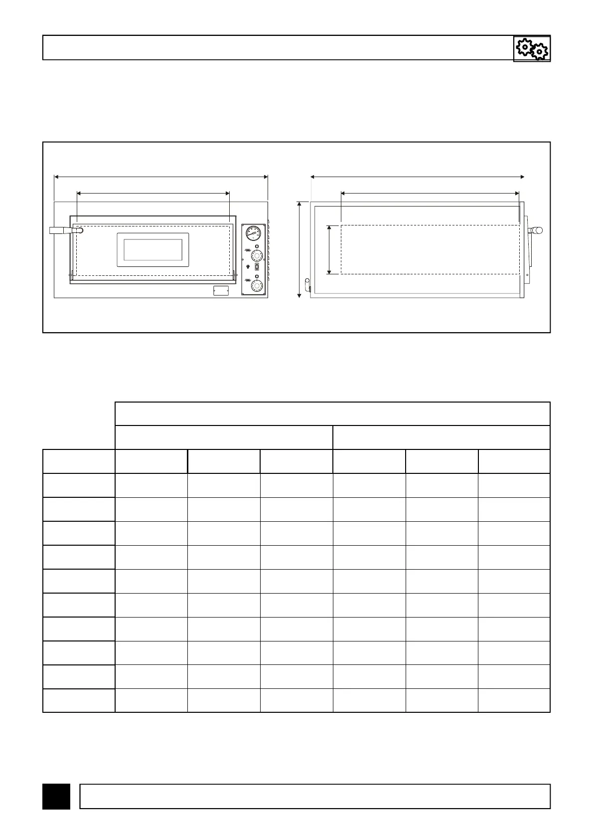ABB. 3 und TAB. 1 geben die Außenabmessungen des Ofens und der Backkammer in den dazuge-
