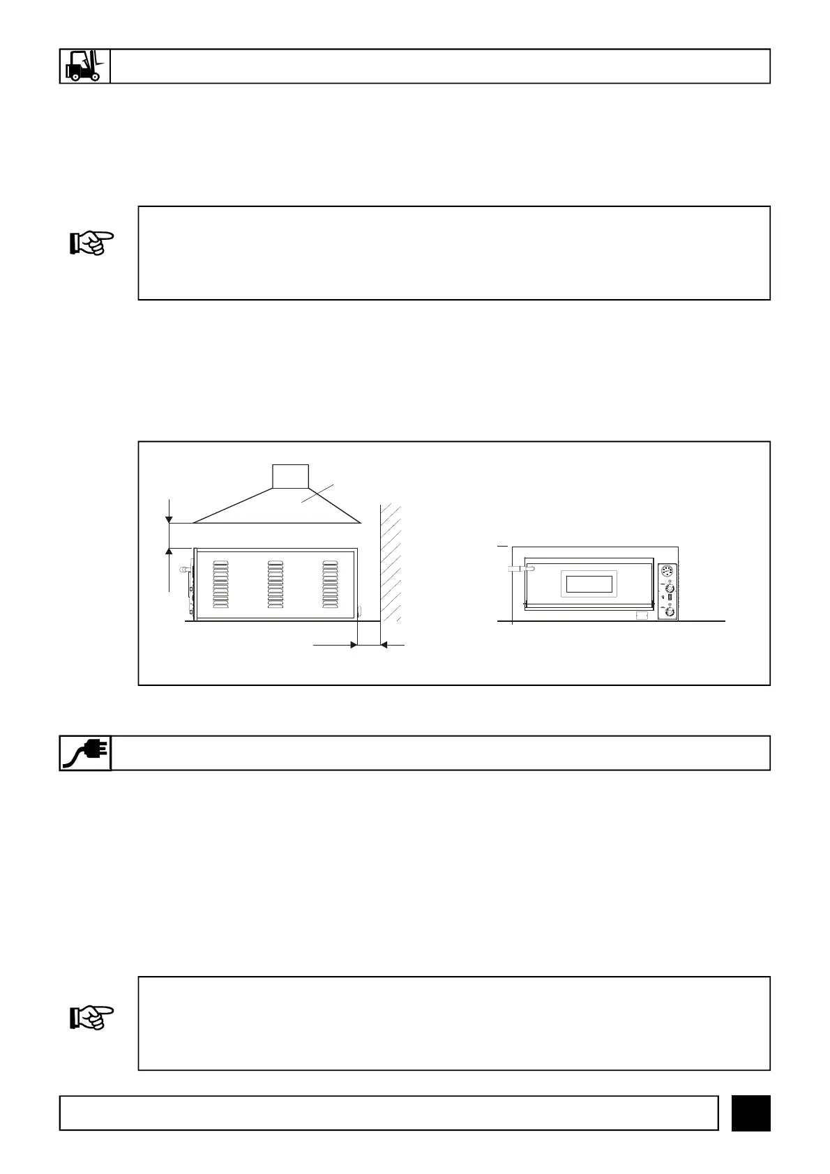 Mindestabmessungen (mm) ausgeführt werden. Der Ofen muss an einer geeigneten Stützebene