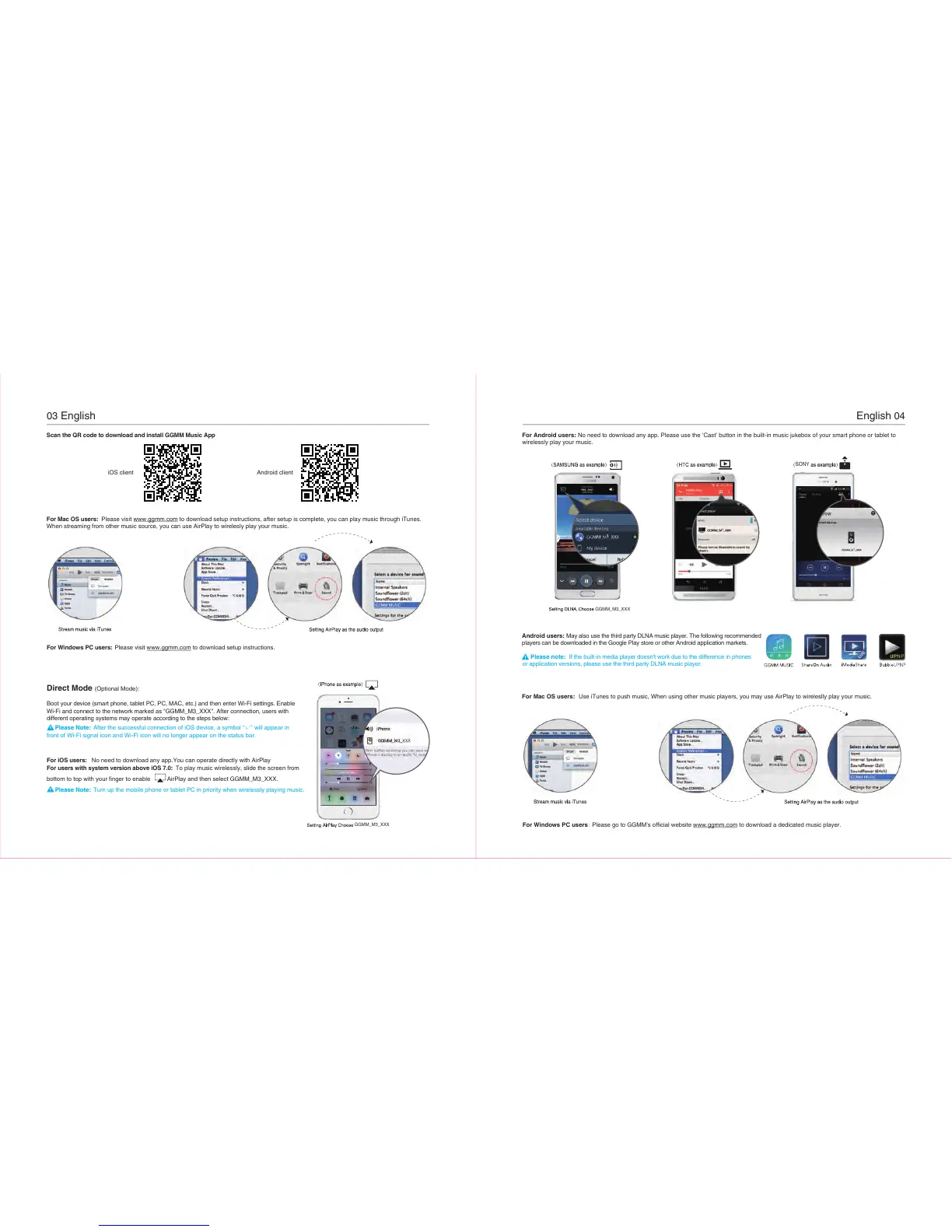 For Mac OS users: Please visit www.ggmm.com to download setup instructions, after setup is complete, you can play music through iTunes.