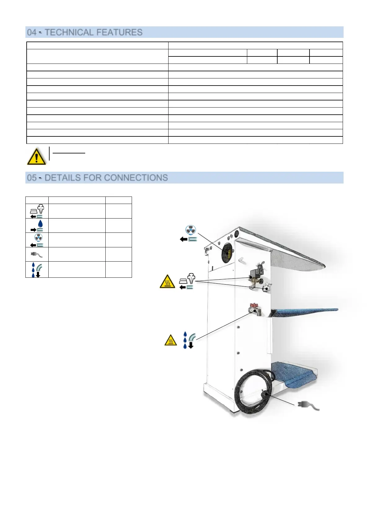 WARNING: The machine must not be supplied with different voltages than those indicated on the