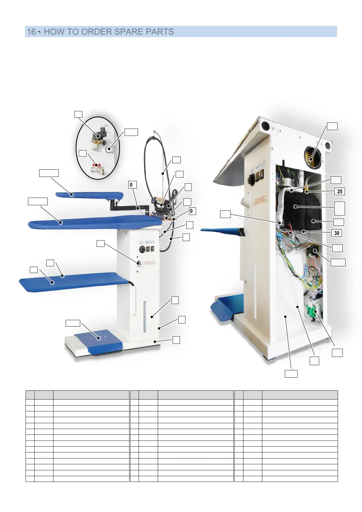 Machine type, serial number, quantity of the requested spare parts, article number (these data can be read on the