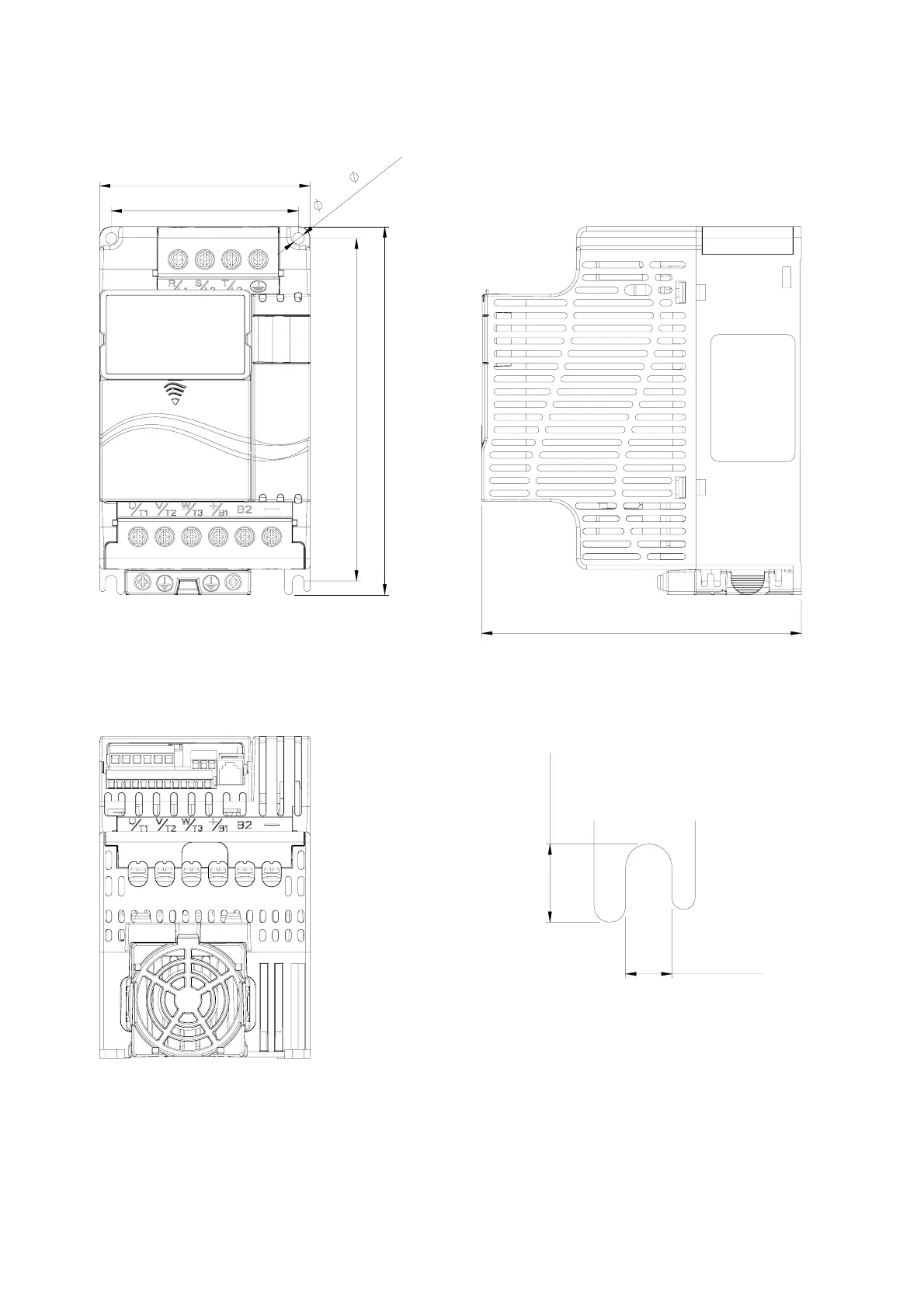 Frame B: VFD007E11A, VFD015E21A, VFD022E21A/23A/43A, VFD037E23A/43A