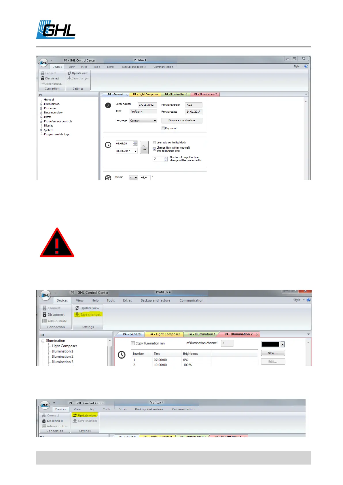 If your ProfiLux is connected to GCC and you make settings directly on your ProfiLux 4 at the