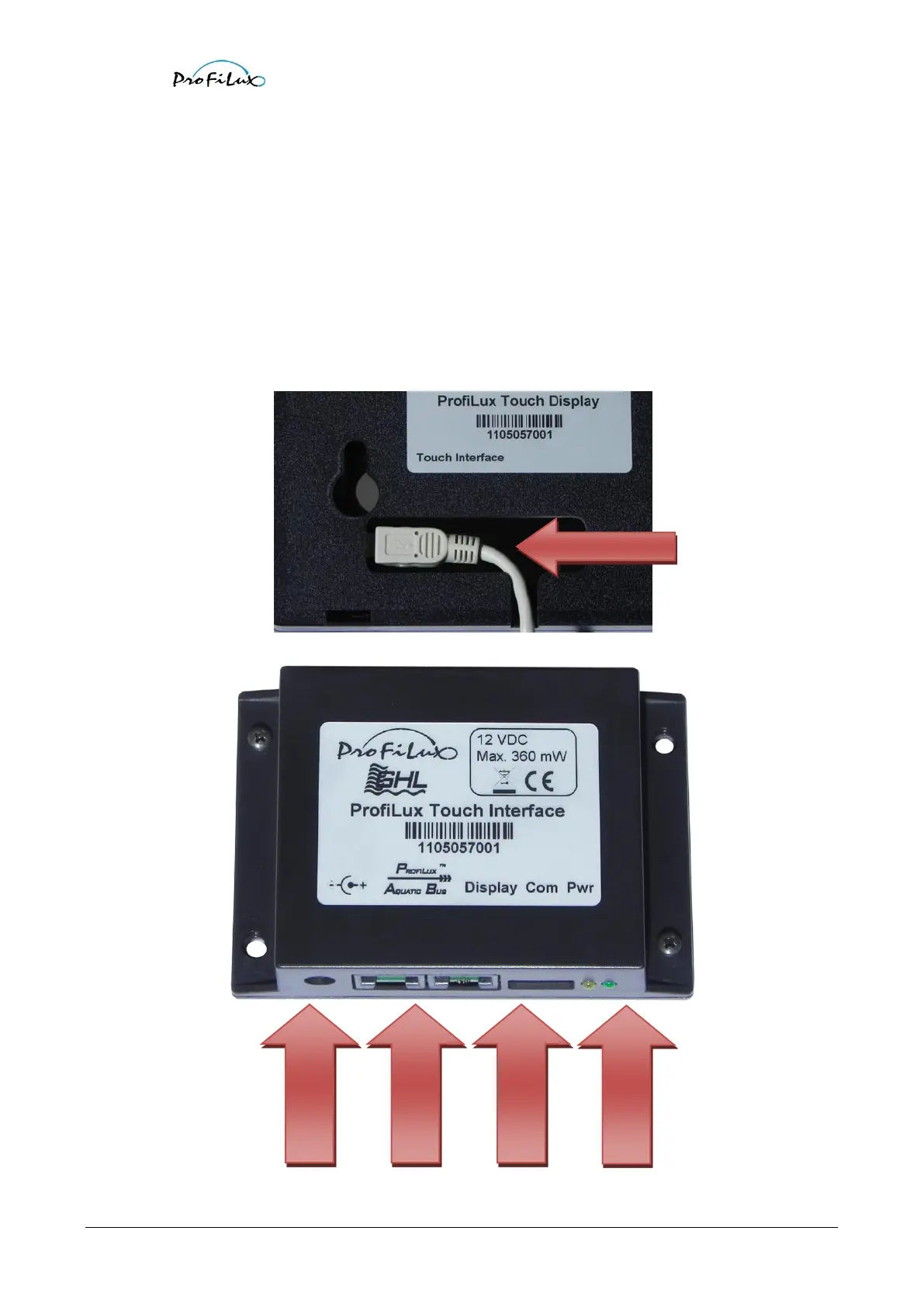 In the rear side of the ProfiLux Touch display you will find a hole, here you have to plug in the cable. The hole has been