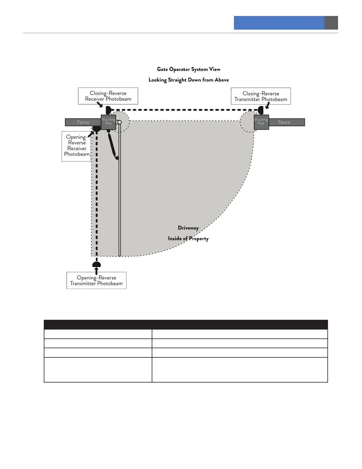 Pinch point between opener and gate Keep hands, feet, and pets away from this area when gate is in motion.