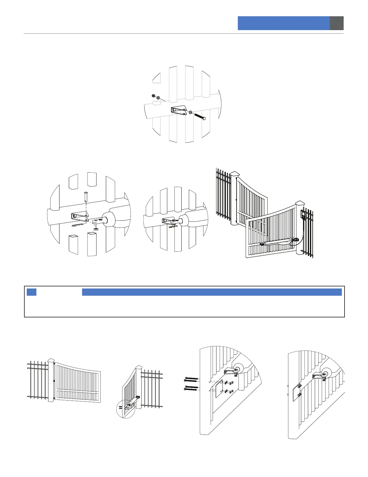 front mount bracket, as show below. Tighten to secure the brackets to the gate. MAKE SURE GATE IS STILL