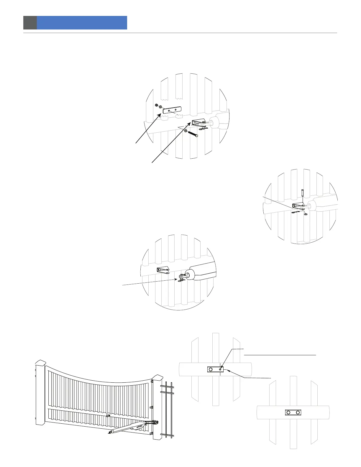 show below. Tighten to secure the brackets to the gate. MAKE SURE GATE IS STILL IN CLOSED POSITION