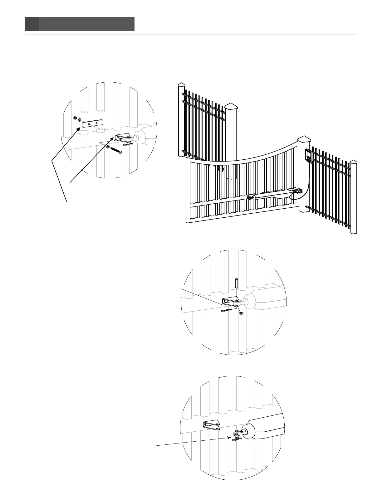 front mount bracket, as show below. Tighten to secure the brackets to the gate. MAKE SURE GATE IS STILL
