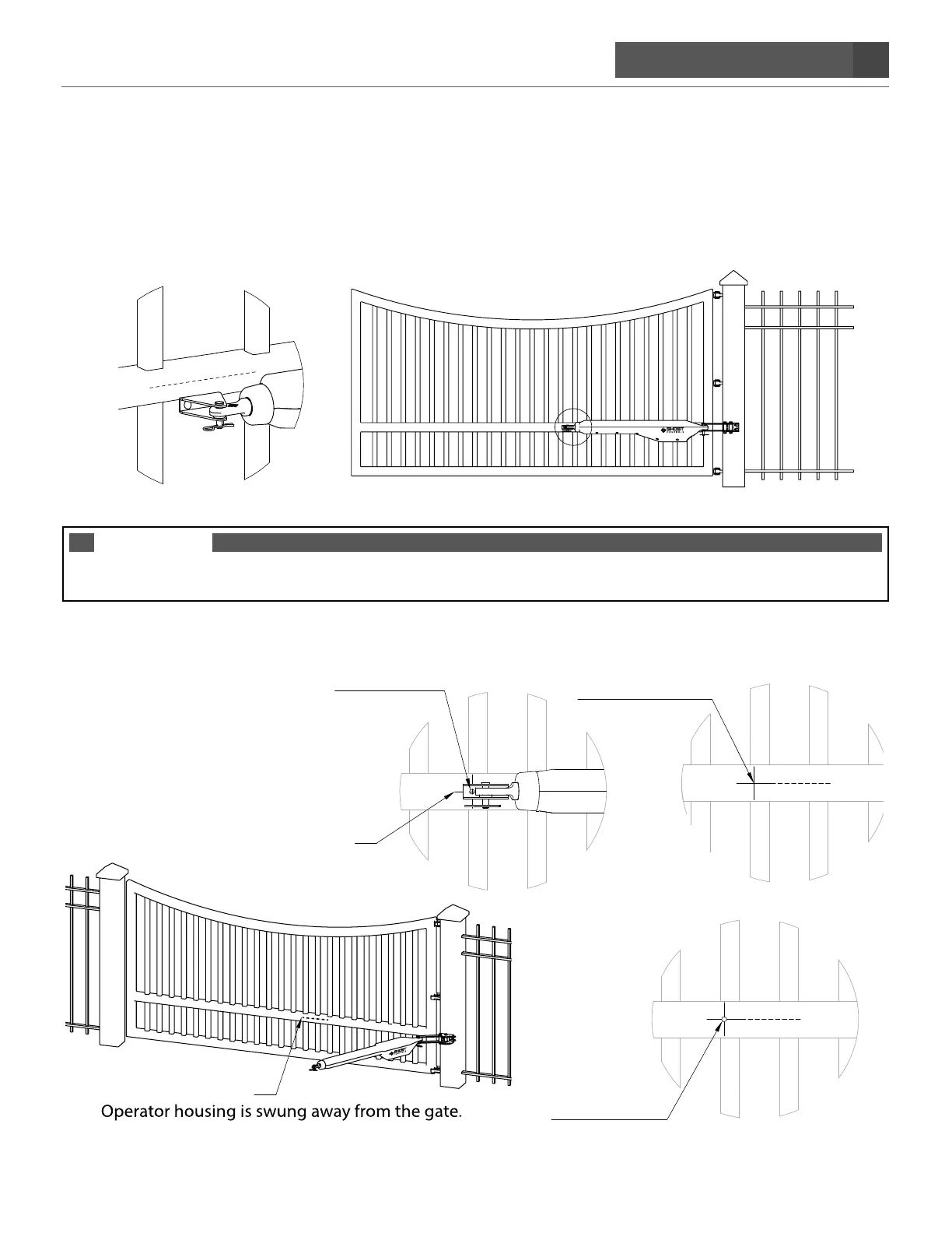 STEP 14. Attach the FRONT MOUNT AND ESTATE BRACKET to gate. The gate must remain