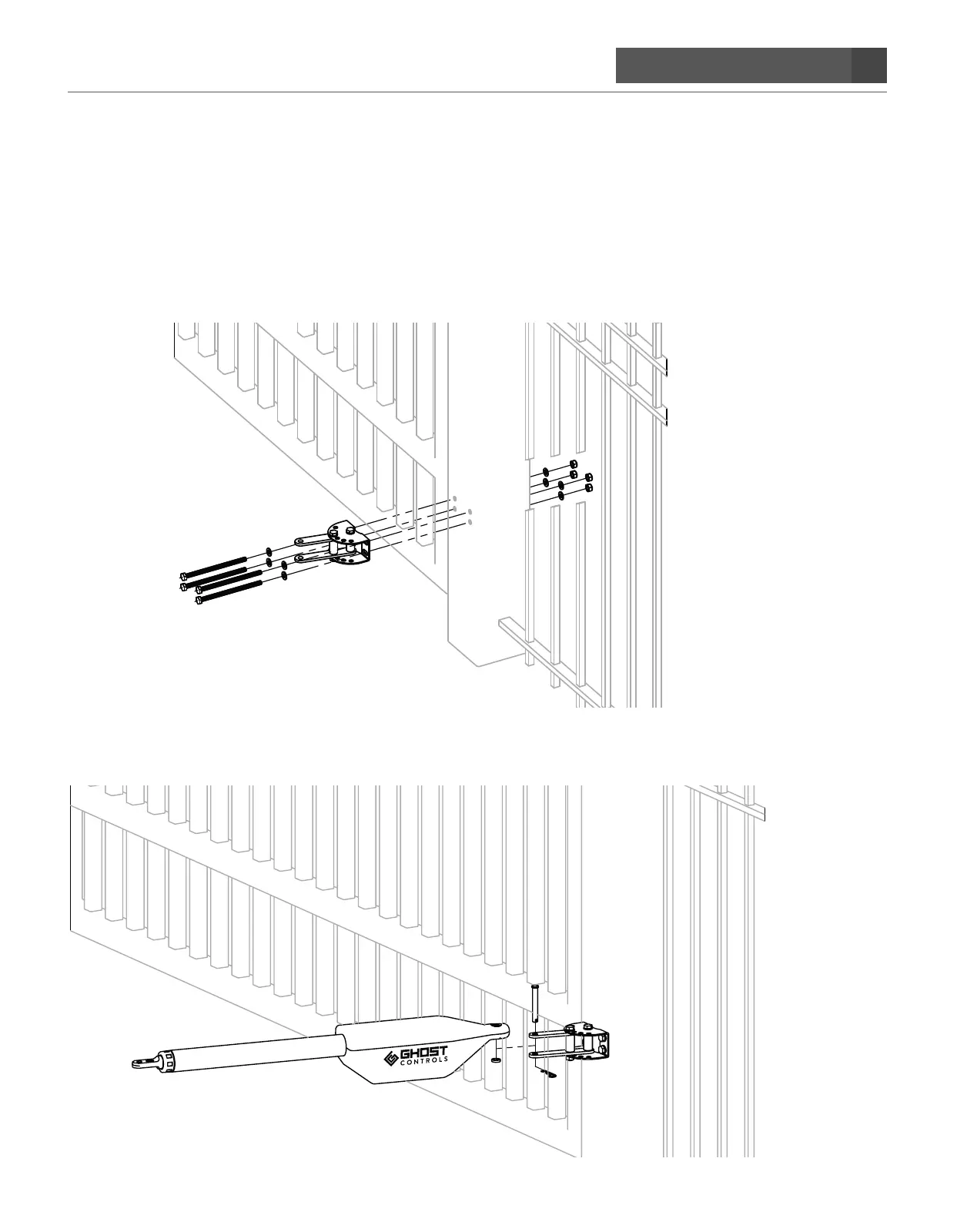 Insert clevis pin, nylon spacer and clevis hairpin as shown below to secure the rear of the operator to the post.