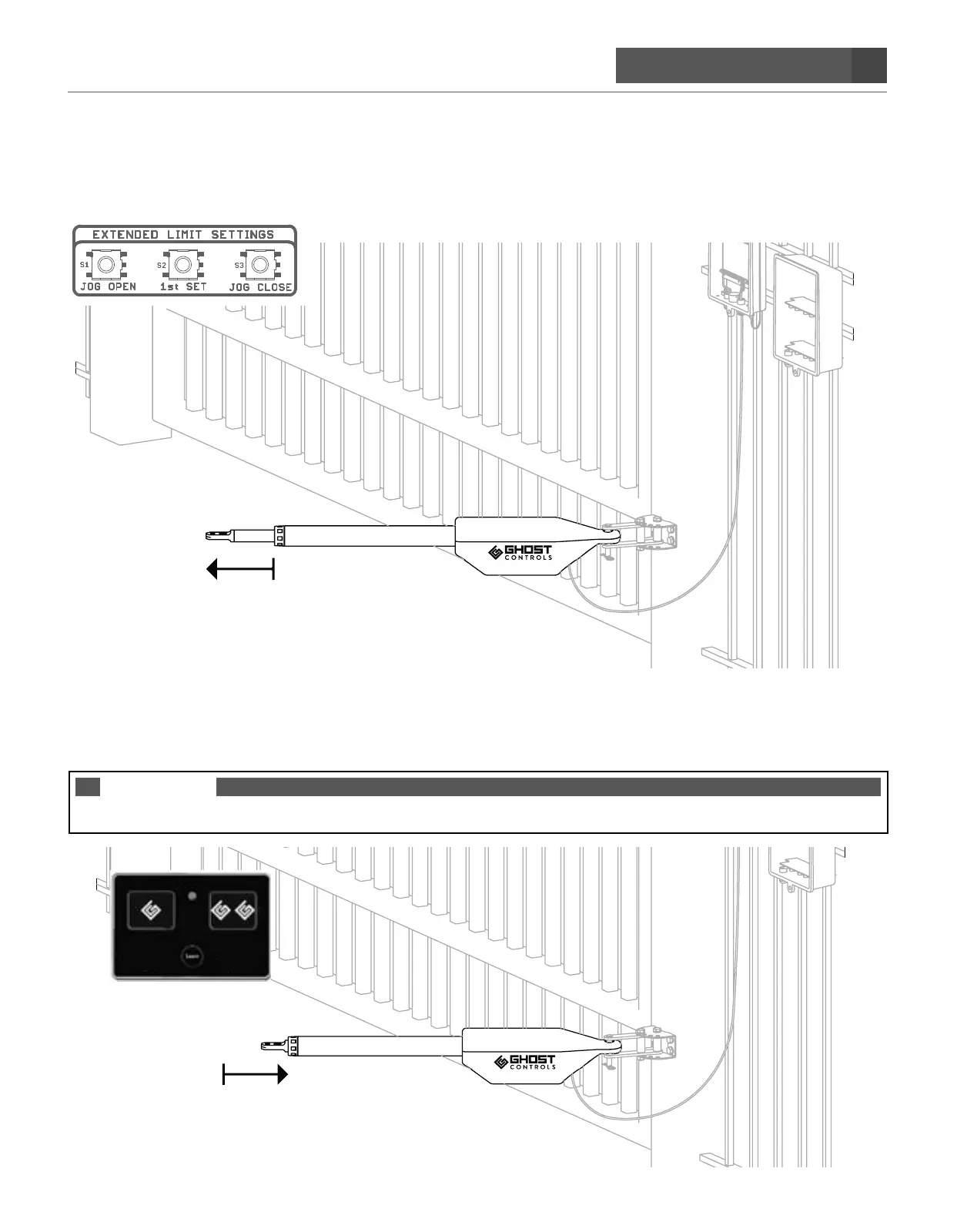 The arm in the fully retracted position will determine the OPEN position of the gate.
