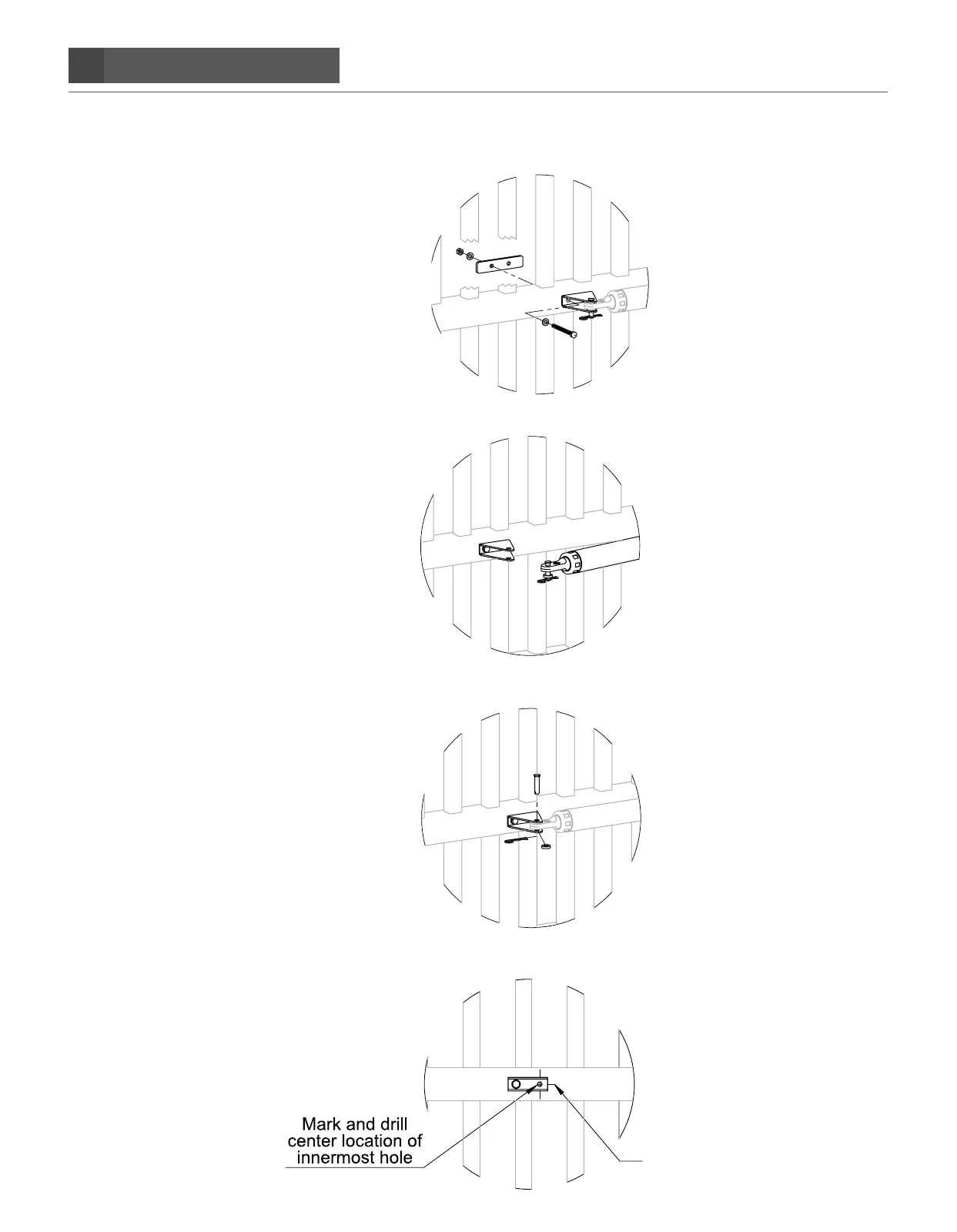 front mount bracket, as show below. Tighten to secure the brackets to the gate. MAKE SURE GATE IS STILL
