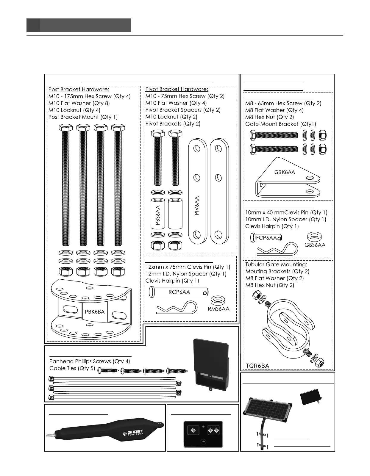 Ghost Controls TDS2 - Included Parts Inventory; Parts for 1 st Operator