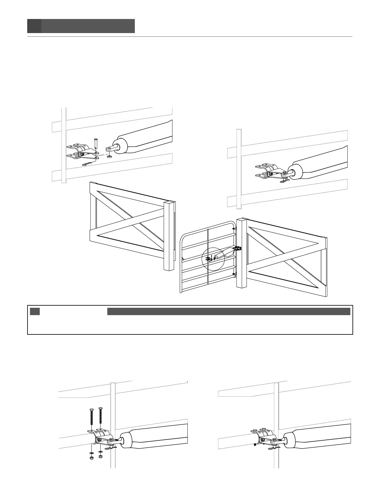 TIGHTEN NUTS TO SECURE THE TUBULAR CLAMP BRACKET TO THE GATE.