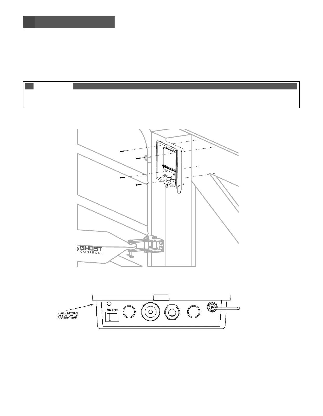 Mount the control box a minimum of 3 feet above the ground to keep dirt and water from damaging the control board