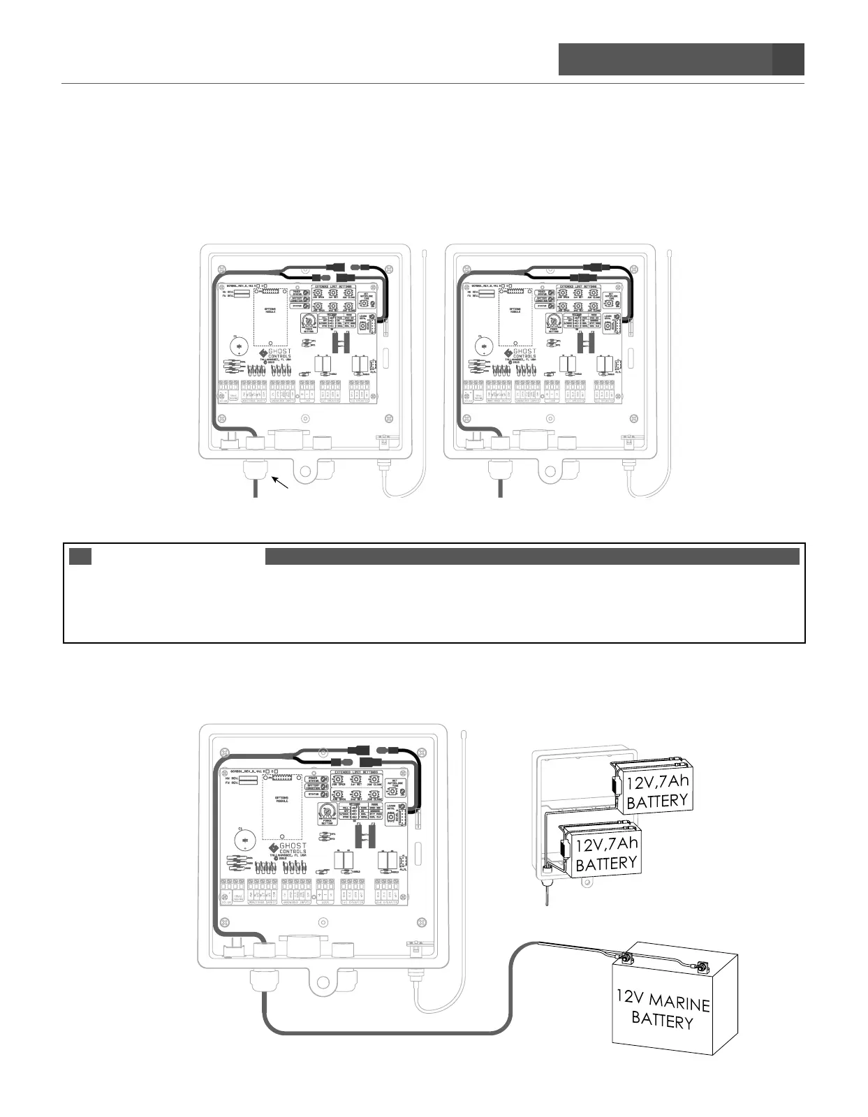 TWO BATTERIES. SYSTEM WILL NOT OPERATE WITHOUT A BATTERY INSTALLED AND CONNECTED AT