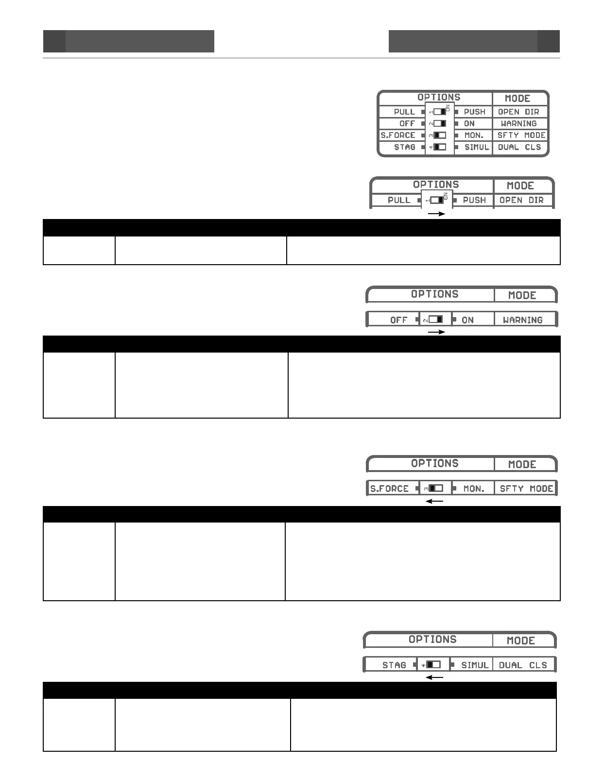 opener systems only is determined by DIP#4. The SECOND arm will always CLOSE first before the FIRST arm.