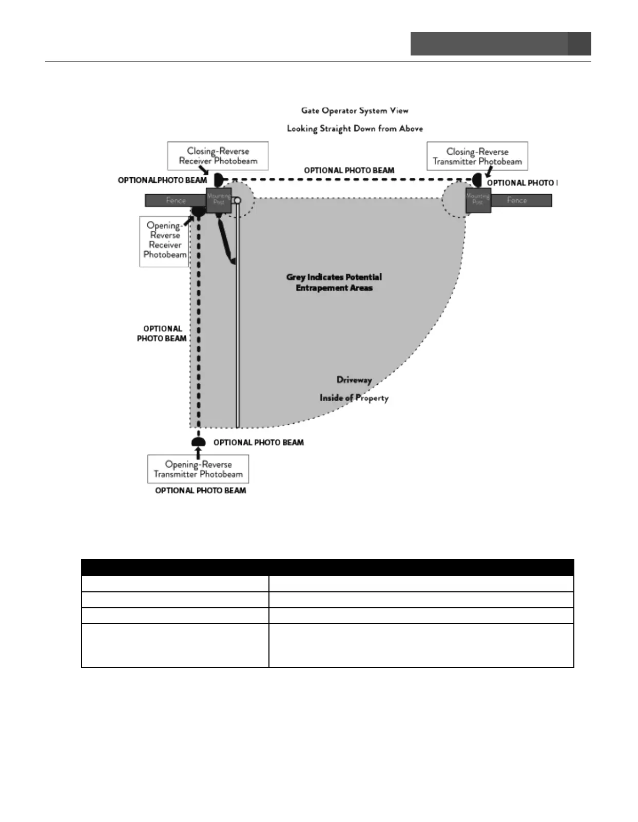 Pinch point between opener and gate Keep hands, feet, and pets away from this area when gate is in motion.